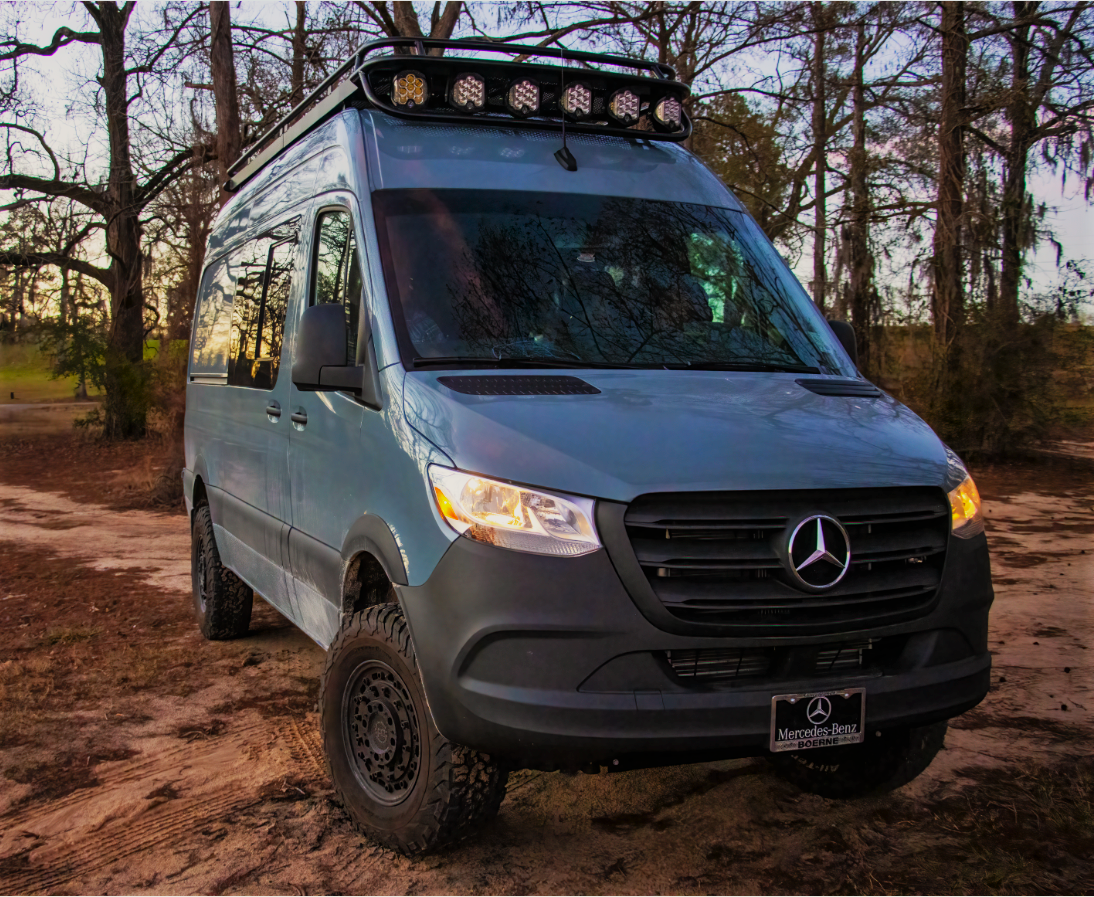 Enhance the sleek lines of your van and conquer the night with our low-profile, curved LED bar style lighting solution, designed for a sophisticated touch.